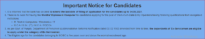 Note: As per the recent announcement, there is no need for having Six Months’ Diploma in Computer for candidates applying for the post of Clerk-Cum-Data Entry Operators B. Tech in Computers / Electronics / IT and B.C.A / B.Sc. (IT) / M.C.A / PGDCA from recognised institutions